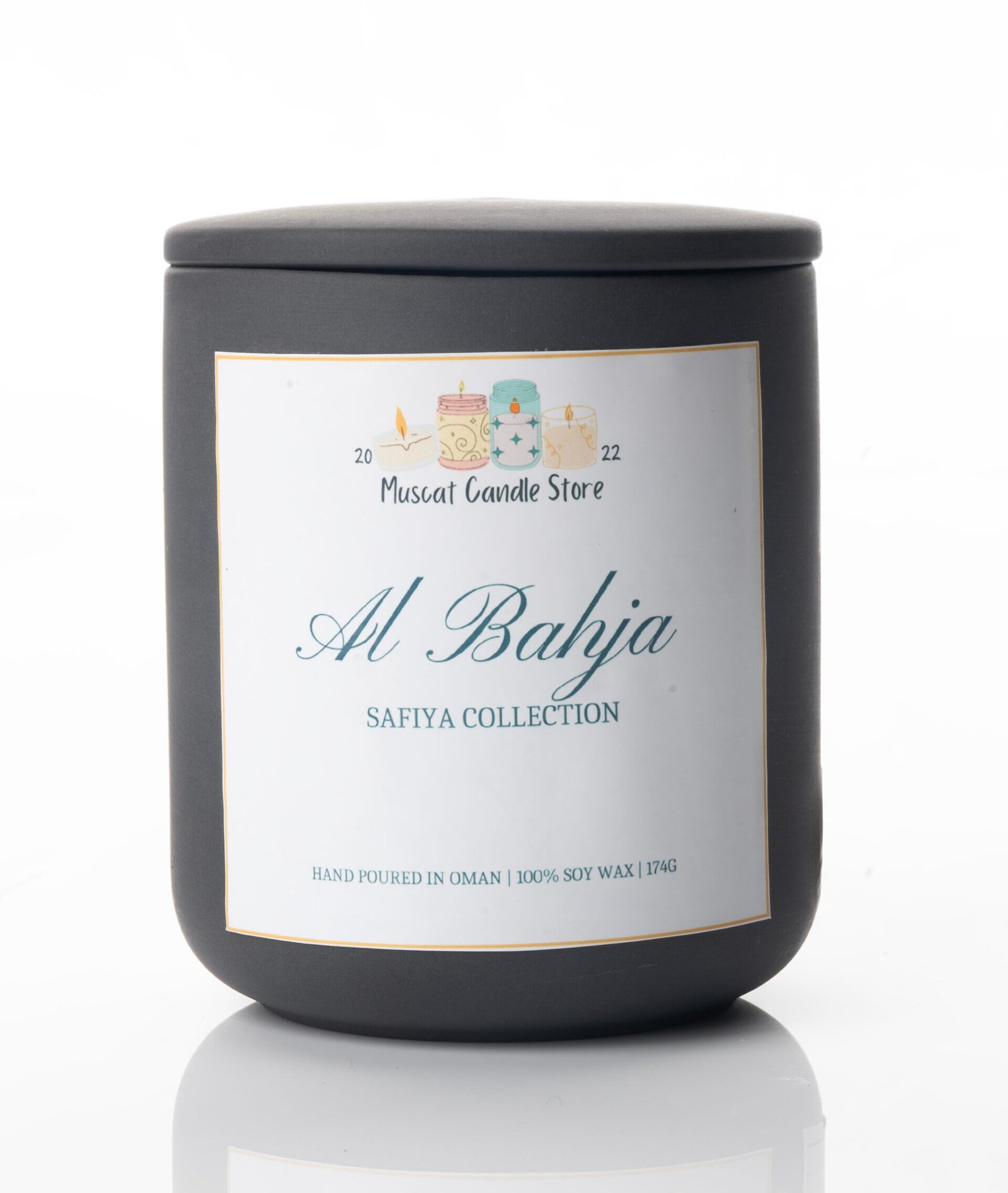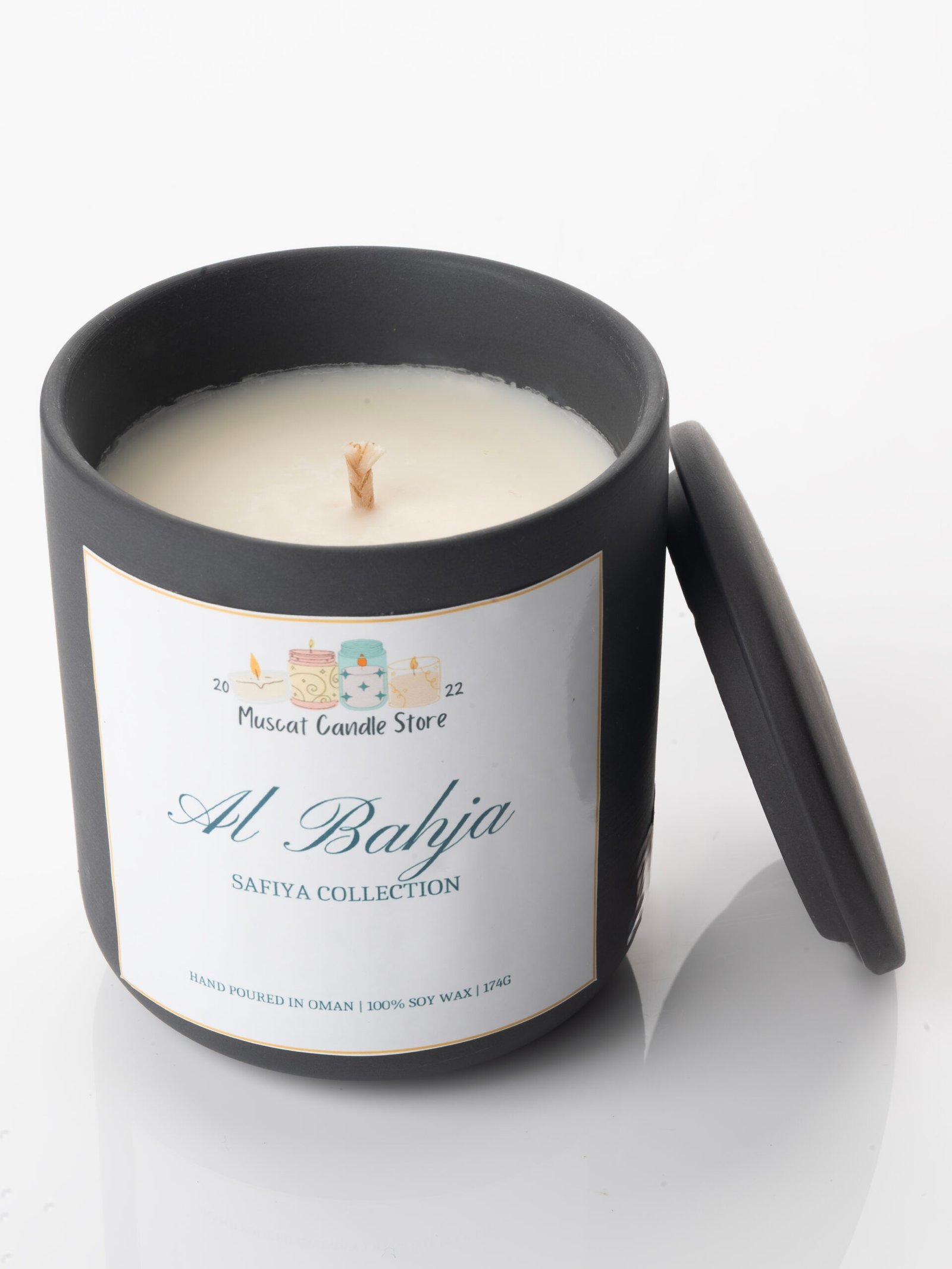 Housed in a sleek black matte jar adorned with original artwork by Omani artist, Safiya Al Bahlani,  Al Bahja is more than a candle—it’s a piece of cultural expression designed to bring warmth, sophistication, and serenity into your space. Perfect for gifting or elevating your own home ambiance.