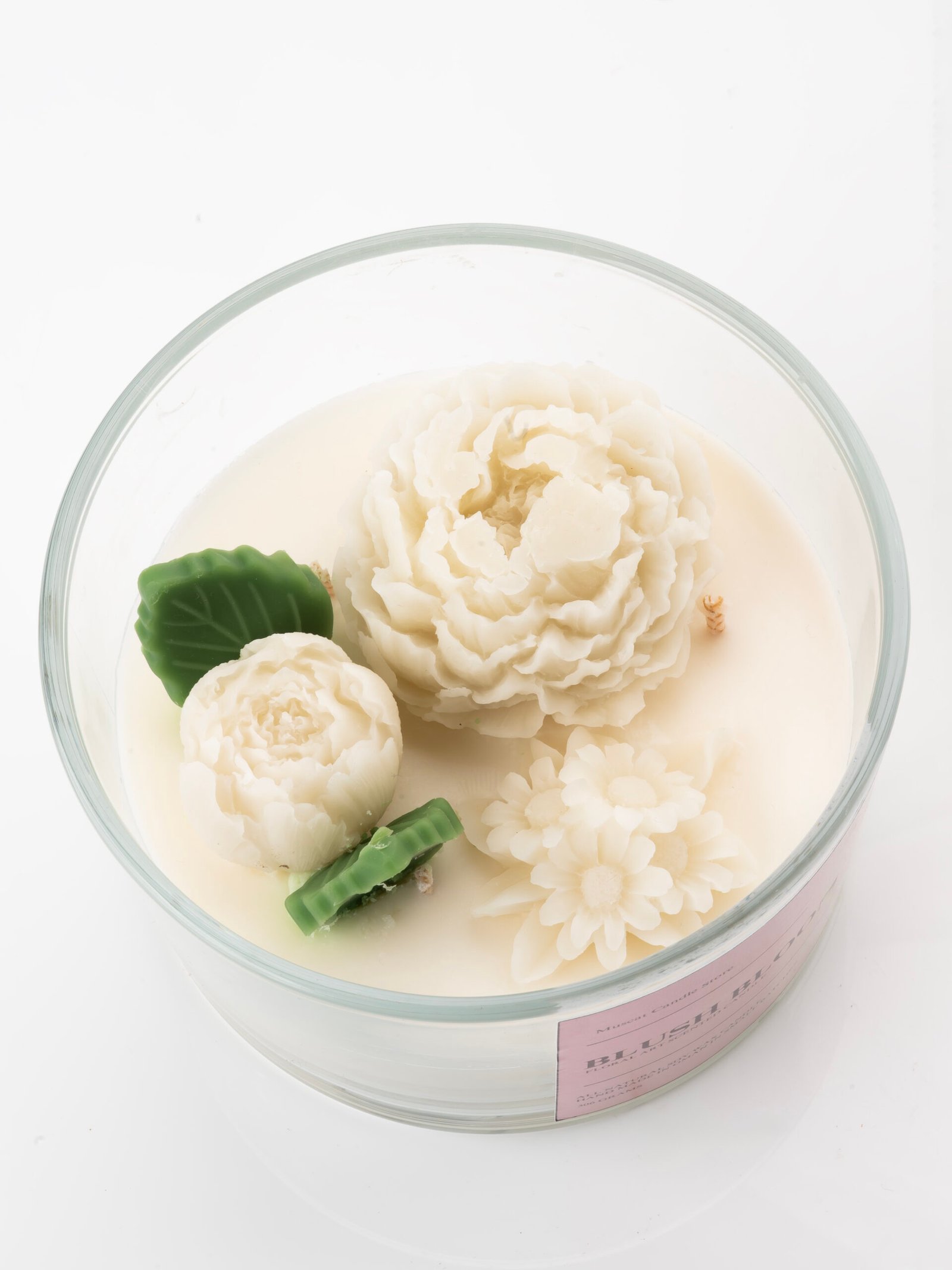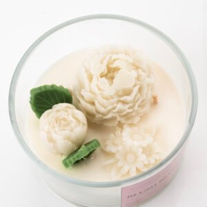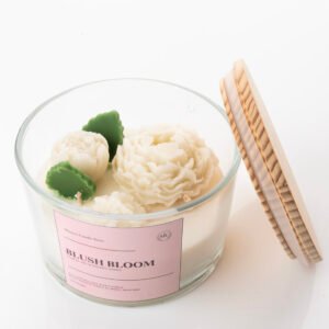 Graceful, serene, and timeless—the Blush Bloom Candle from Muscat Candle Store captures the essence of quiet sophistication. Hand-poured in Oman using 100% natural soy wax, this floral art candle is adorned with intricately sculpted ivory blooms, accented by fresh green leaves.