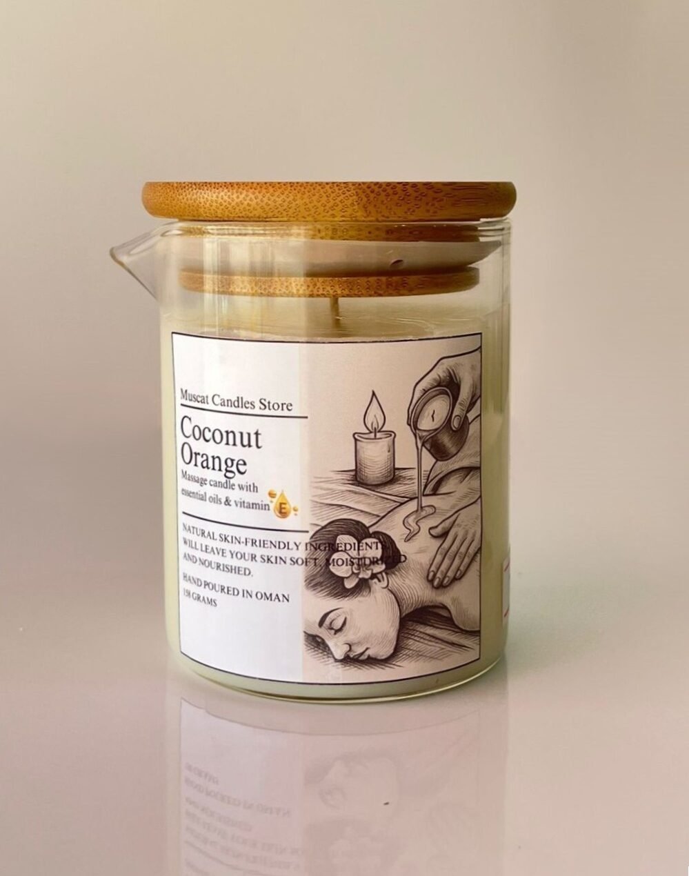 Indulge in the soothing blend of coconut and orange with our luxurious massage candle, hand-poured in Oman. Crafted with natural, skin-friendly ingredients and enriched with essential oils and vitamin E, this candle melts into a warm, silky massage oil that leaves your skin soft, moisturized, and nourished.