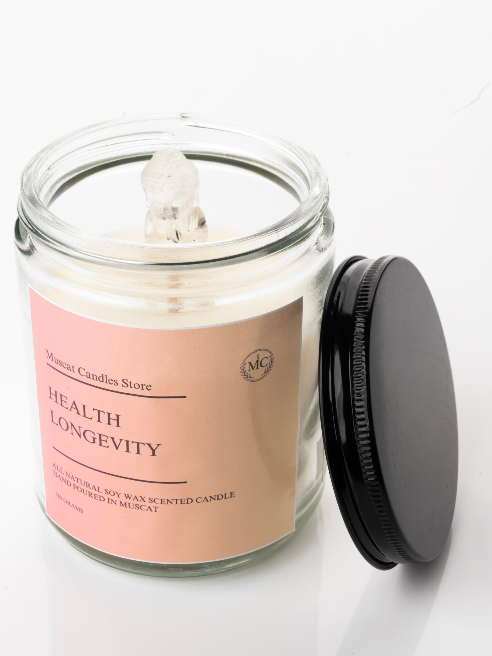 Breathe in balance and well-being with the Health & Longevity Candle — a soothing blend of natural soy wax and calming fragrance, topped with a clear quartz crystal to radiate positive energy. Hand-poured with care, this candle is designed to nurture your spirit, encourage vitality, and create an atmosphere of healing and renewal.
