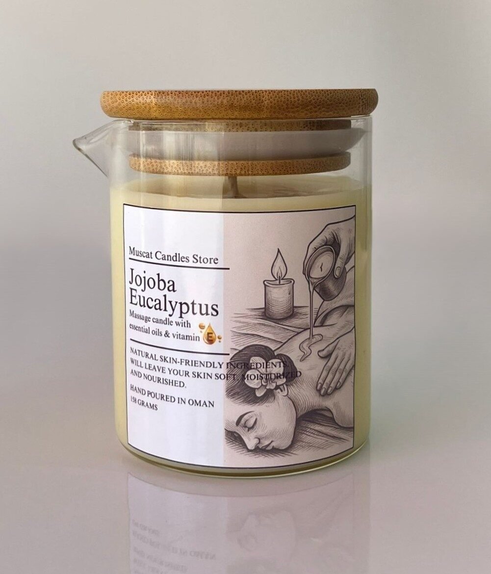 Turn relaxation into a ritual with our Jojoba Eucalyptus Massage Candle – a luxurious blend of soothing aromatherapy and nourishing skincare. Hand-poured in Oman with natural soy wax, jojoba oil, eucalyptus essential oil, and vitamin E, this candle is designed to melt into a warm, skin-loving massage oil.