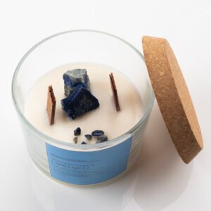 Ignite wisdom, courage, and strength with the Lapis Lazuli Crystal Healing Candle by Muscat Candles Store. Made with 100% natural soy wax and premium candle safe fragrance oils, this 265g candle is infused with the empowering energy of lapis lazuli—long cherished as a stone of truth, intellect, and inner power.