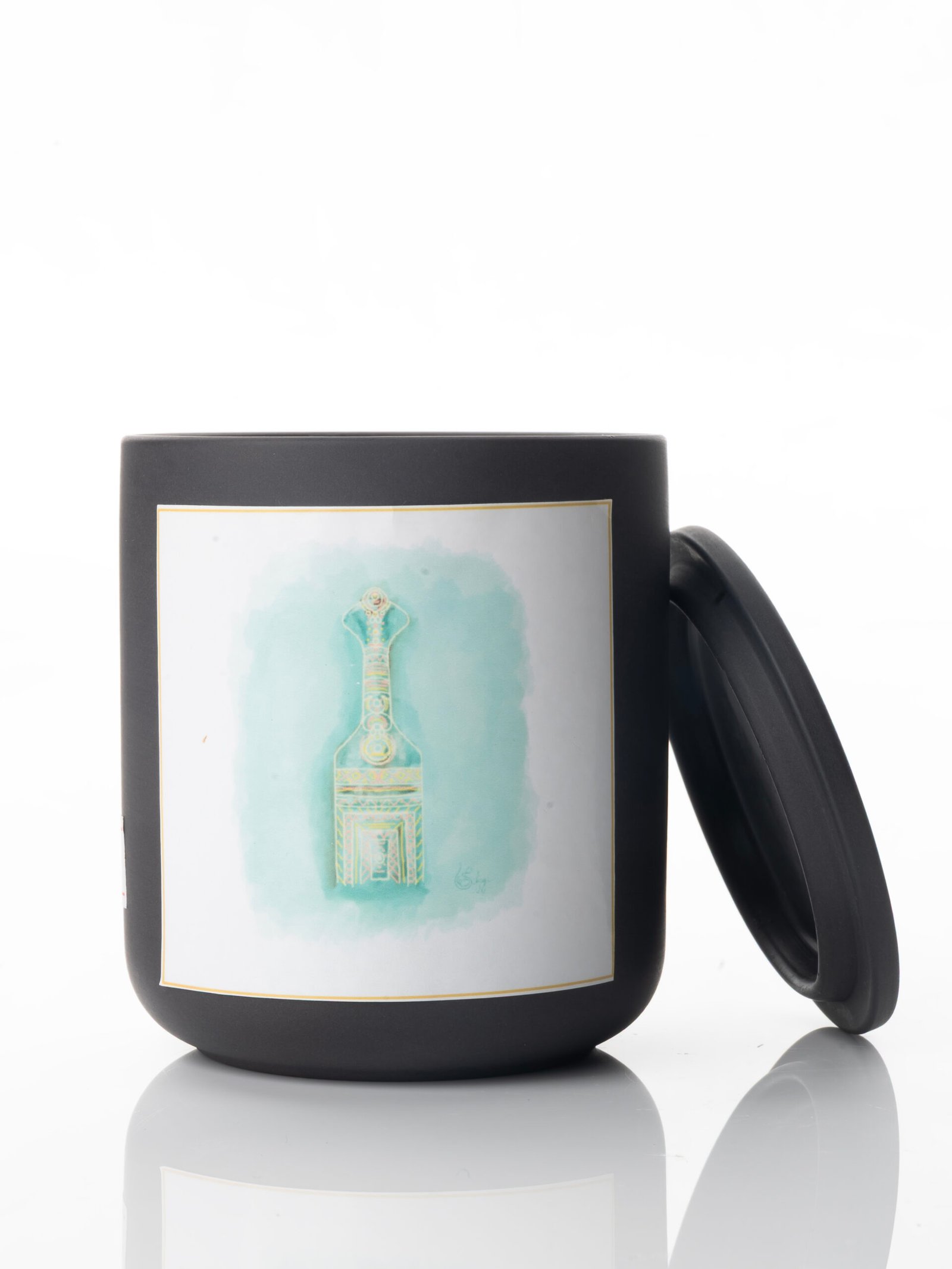 Presented in a sleek matte-black colored jar with original artistic detailing by Omani artist Safiya Al Bahlani, it’s not just a candle—it’s a centerpiece of style and ambiance. Perfect for elevating your evenings, gifting someone special, or adding a touch of luxury to your home.