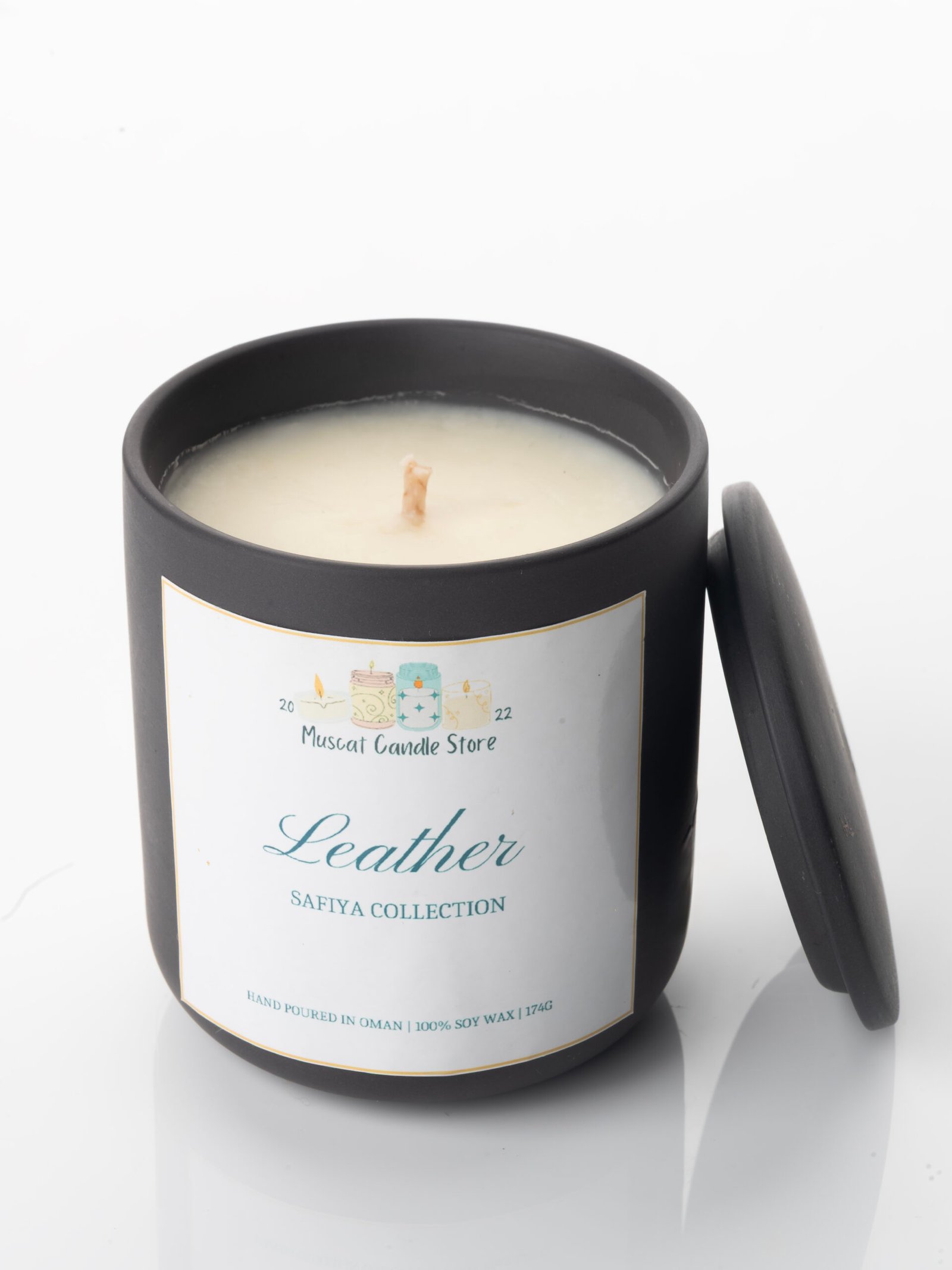 Our Leather Candle from the Safiya Collection is a statement of sophistication, blending deep, masculine notes with a smooth elegance that fills your space with warmth and character. Hand-poured in Oman with 100% soy wax and infused with premium fragrance oils, this candle evokes the luxurious essence of fine leather and craftsmanship.