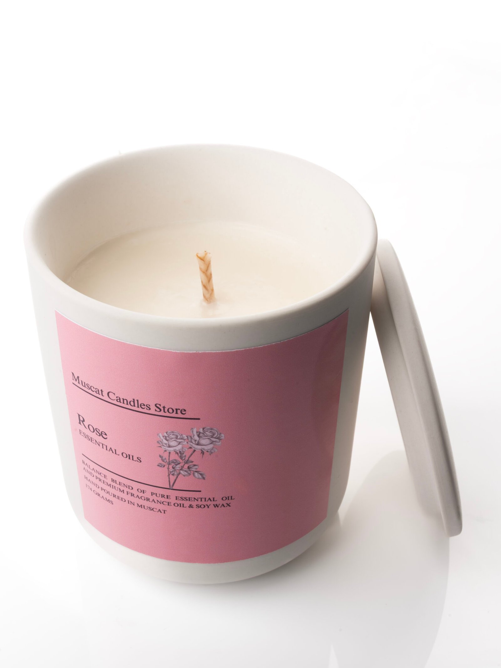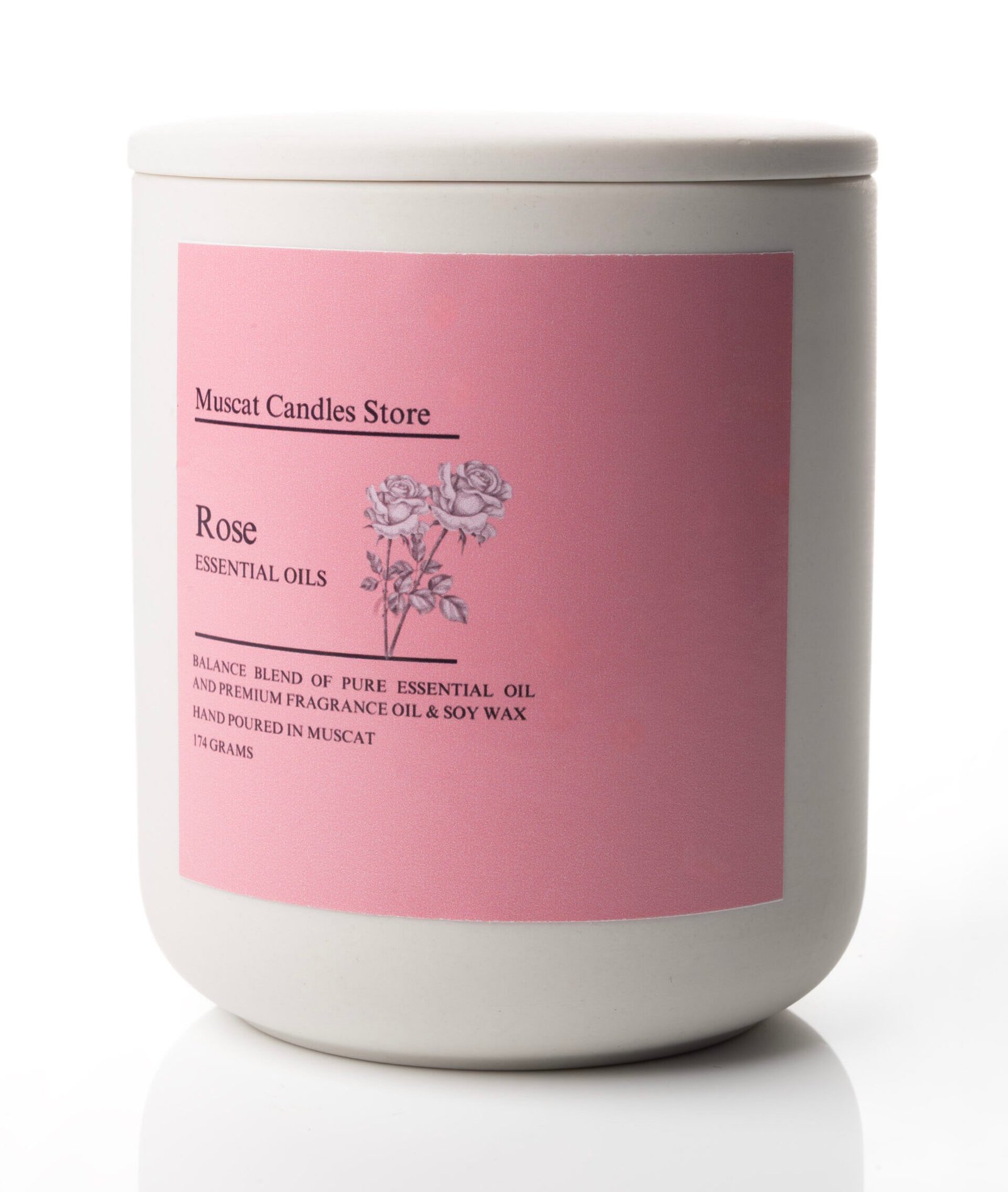 Hand-poured in Muscat with a balanced blend of pure essential oils, premium fragrance oils, and natural soy wax. The soft, floral aroma of rose fills your space with romance, serenity, and a touch of luxury. Known as the “queen of flowers,” rose has been cherished for centuries for its soothing and uplifting qualities. This candle is perfect for unwinding after a long day, creating a romantic atmosphere, or simply adding beauty and warmth to your home.