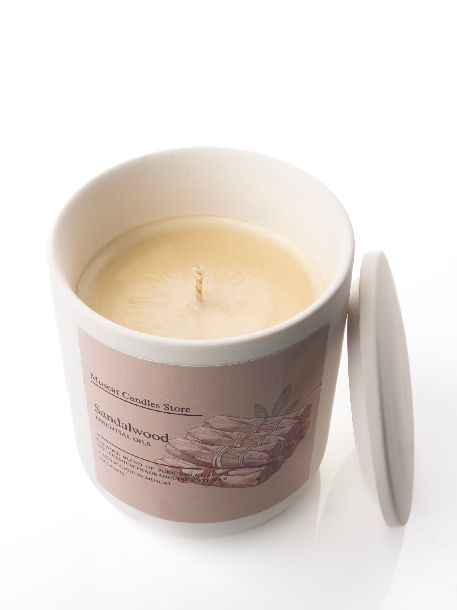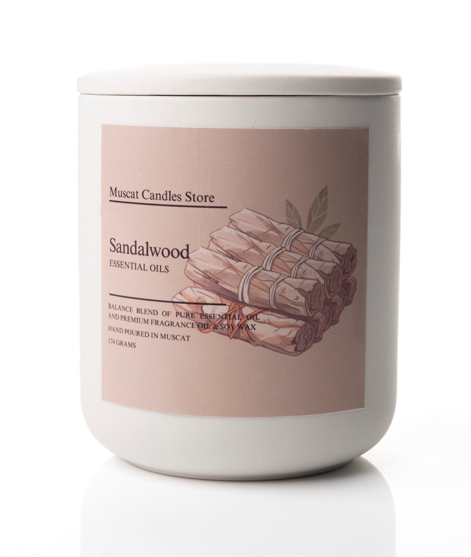 Hand-poured in Muscat using a balanced blend of pure essential oils, premium fragrance oils, and natural soy wax. Its rich, woody aroma carries a warm, earthy elegance that soothes the senses and creates a serene atmosphere. Known for its calming and grounding properties, sandalwood helps reduce stress, quiet the mind, and invite peace into your space—perfect for meditation, relaxation, or unwinding after a long day.